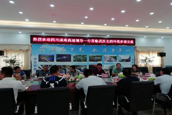 7月20日,四川成南高速公路有限責(zé)任公司總經(jīng)理蘇開春、副總經(jīng)理廖壯志一行八人來到武漢交投集團(tuán)北四環(huán)項(xiàng)目參觀交流。武漢交投集團(tuán)總工程師、北四環(huán)公司總經(jīng)理王愛民,交投集團(tuán)第五黨支部書記余皓陪同參觀。