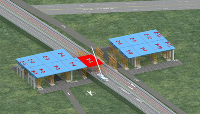 由于施工路段跨岱黃高速,行車密度大,且吊裝作業(yè)在線路上空,安全保通要求高,施工安全壓力大。為保證鋼箱梁的安全架設(shè),在市交通運(yùn)輸局的指導(dǎo)下,在交投集團(tuán)的引領(lǐng)下,北四環(huán)公司精心部署、周密安排、提早謀劃相關(guān)工作,編制了鋼箱梁制作方案、運(yùn)輸?shù)跹b方案、道路保通方案、安全專項(xiàng)方案以及焊接工藝評(píng)定等,并多次組織專家論證,通過繪制3Dmax圖,提前預(yù)演施工全過程,全方位保障施工的順利進(jìn)行。通過對(duì)施工現(xiàn)場(chǎng)的實(shí)時(shí)動(dòng)態(tài)管理和嚴(yán)密監(jiān)控,北四環(huán)線高速公路跨岱黃高速鋼箱梁順利合龍,并于次日凌晨6:00恢復(fù)正常交通,將施工影響降至了最低。
