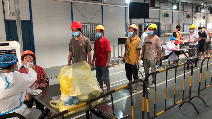 對照最高管控標準,集團各建設工地嚴格落實主體責任,組織總包管理人員和分包單位主要負責人開展疫情防控培訓,狠抓各項防疫和安全生產措施的有效落實;嚴格落實閉環管理,各施工現場僅保留一個出入口,對進場人員實行手機掃碼、紅外測溫、人臉識別等實名制管控;嚴格落實全員核酸檢測工作,對檢測情況登記造冊,建立健全健康監測制度;嚴格落實常態化管控,建立日常消毒臺帳,每日不少于兩次對重點部位和密集場所進行消殺通風,不留死角;嚴格落實應急應對措施,各項目第一時間開展防疫物資檢查,確保防控物資儲備到位;嚴格落實24小時值班值守制度,堅決杜絕遲報、漏保、瞞報等行為。